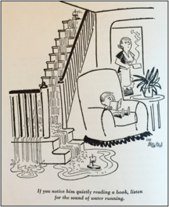 These cartoons struck a nerve. First The Saturday Evening Post, then Collier’s and then a host of other magazines began buying them. When a savvy editor pointed out the fact that they were a husband-and-wife team was a good publicity angle, they changed their byline to “The Berenstains” and a historic sixty-year-long partnership devoted to chronicling family life began.